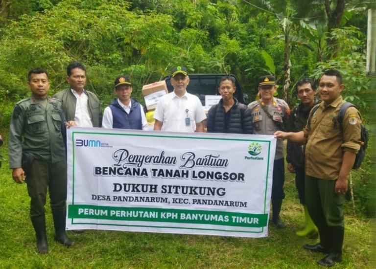 Camat Pandanarum, Agung Dwiantoko, menyampaikan terima kasih atas perhatian dan bantuan yang diberikan Perhutani. “Kami sangat bersyukur atas bantuan yang hari ini disalurkan. Kondisi di lapangan tidak mudah sejak longsor terjadi, dan dukungan ini sangat membantu kami memenuhi kebutuhan sehari-hari selama mengungsi,” ujarnya.